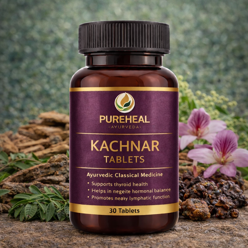Kanchnar Guggulu is widely used by Ayurvedic experts for normalizing the function of the thyroid gland. Detoxifying and cleansing properties of Guggulu are combined with Kanchnar to support the healthy function of the thyroid. It also helps to cleanse the lymphatic system (network of tissues and organs which help to remove toxins, waste, and other unwanted materials from the body.